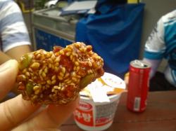 2 Hamburger (517 kcal), Schokoladenkuchen (449 kcal), Walnuss (36 kcal), 5 Champignons (2 kcal)